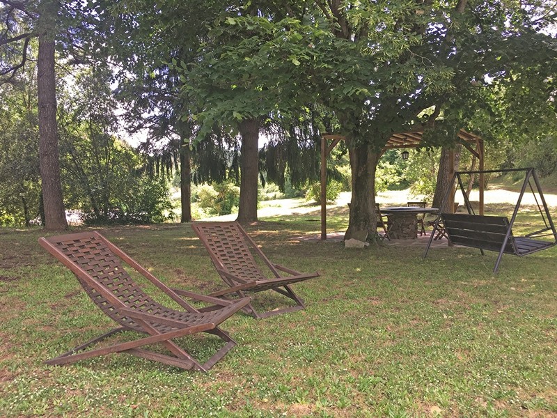 На территории бассейн 11х3.5 и вспомогательные постройки: домик при бассейне 25 кв.м., гараж и бодега 42.5 кв.м., летняя столовая с барбекю, пруд с водой для орошения, склад 17 кв.м., корт теннис-фронтон, курятник и псарня.