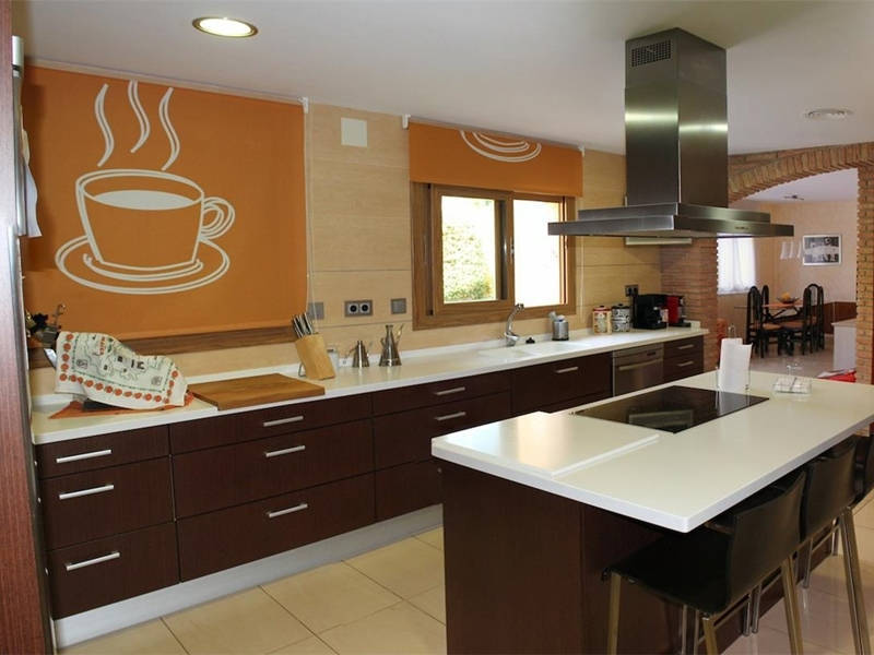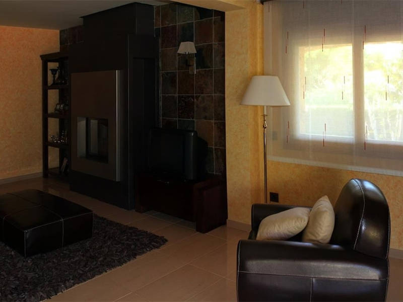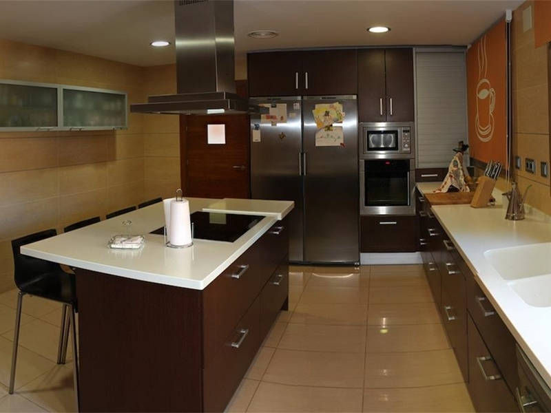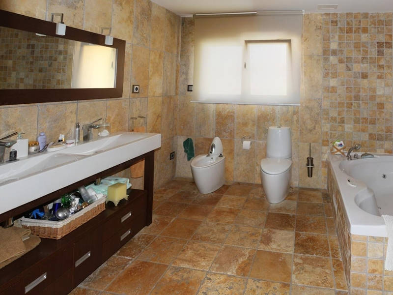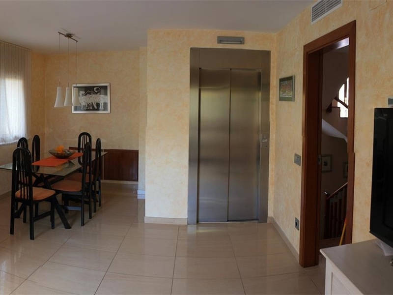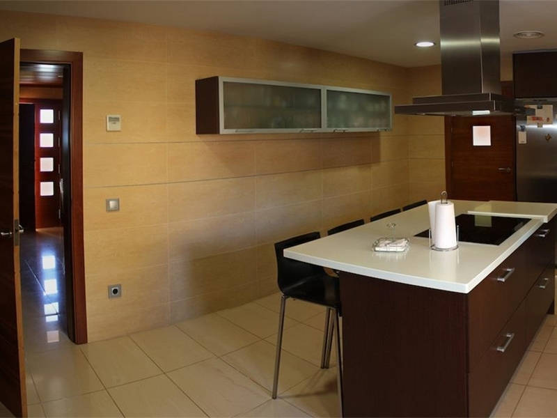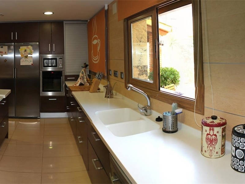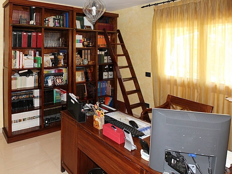 На первом этаже расположена гостиная со столовой и выходом на террасу, оборудованная и полностью экипированная кухня-офис с островом, прачечная с кладовой, кабинет, гардеробная и ванная комната.
