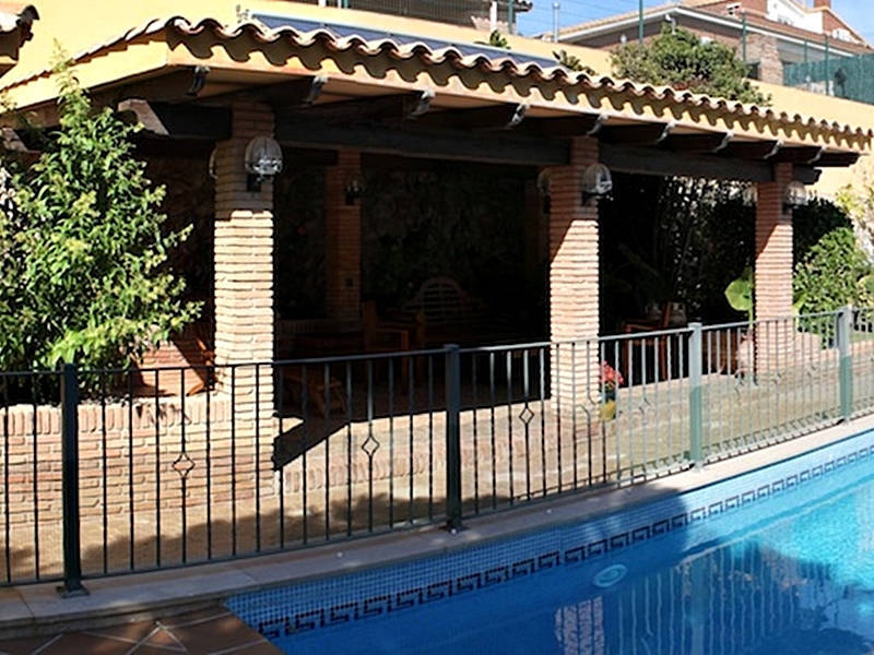 Сад, бассейн с летней столовой, барбекю и дровяная духовка.