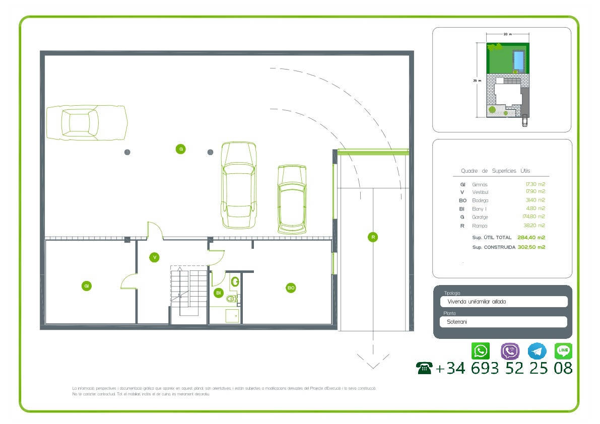 В подвальном помещении расположен гараж на несколько машин, спортзал и спальня с ванной комнатой для jобслуживающего персонала.