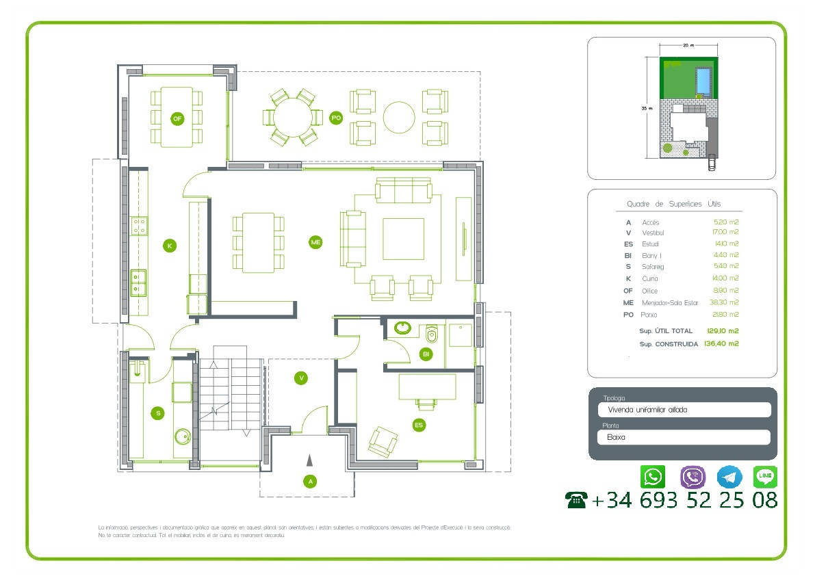 На первом этаже располагаются прихожая, гостиная с террасой и выходом в сад и к собственному бассейну (4х8), столовая, с/у, полностью оборудованная кухня, прачечная и спальня с ванной комнатой.