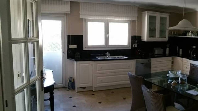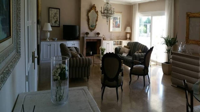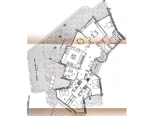Гостиная 50 кв.м. с камином и выходом на террасу, оборудованная и полностью экипированная кухня-офис 30 кв.м., супружеская спальня 30 кв.м. с ванной комнатой и гардеробом, ещё четыре спальни 22 кв.м. каждая со своими ванными комнатами и встроенными шкафами, гладильня с с/у и душем.