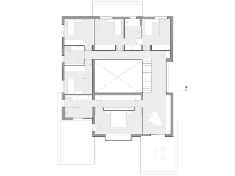 На втором этаже холл с выходом на террасу с видом на море, супружеская спальня с ванной комнатой и террасой с видом на море, вторая супружеская спальня с ванной комнатой, ещё три спальни и ванная комната.