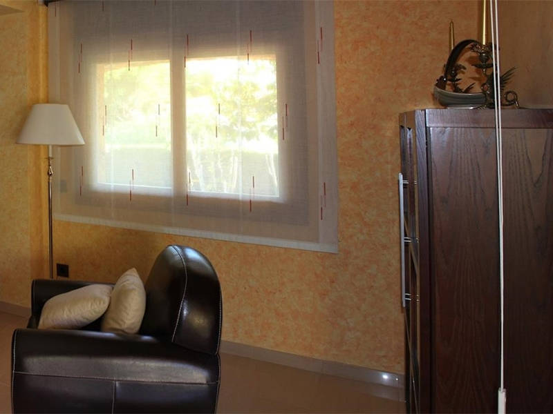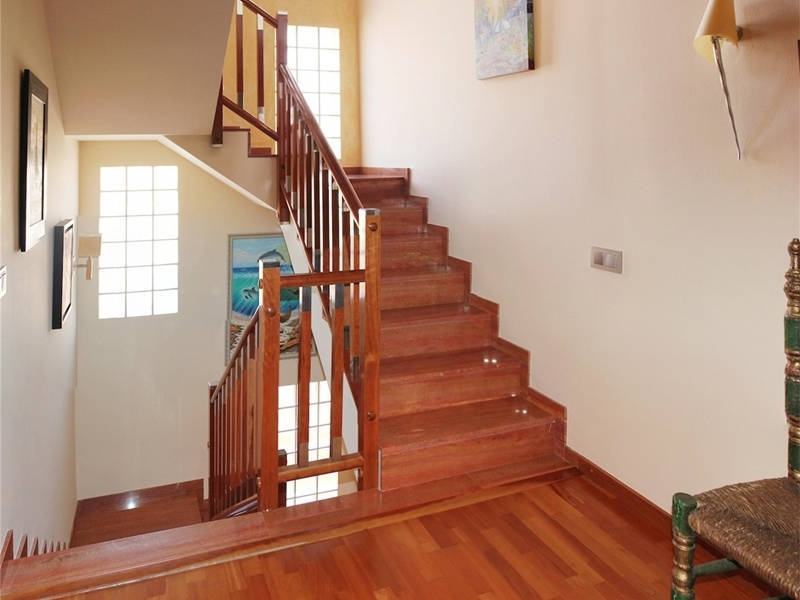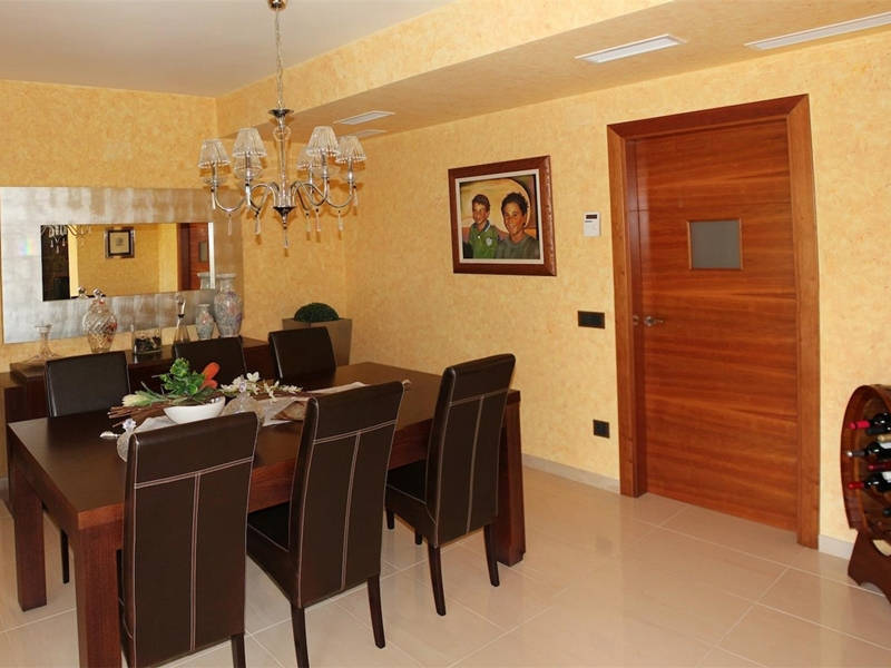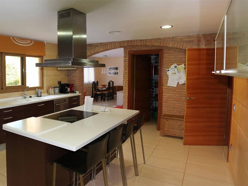 На первом этаже расположена гостиная со столовой и выходом на террасу, оборудованная и полностью экипированная кухня-офис с островом, прачечная с кладовой, кабинет, гардеробная и ванная комната.