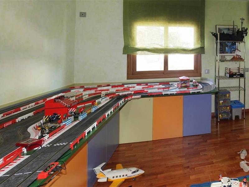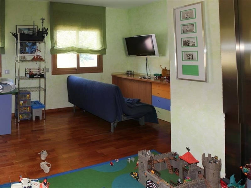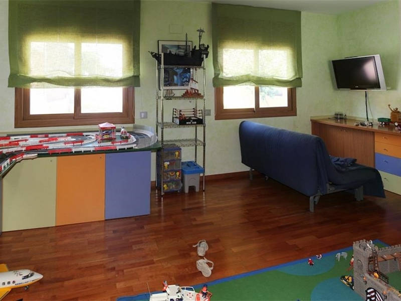 На втором этаже супружеская спальня с ванной комнатой и джакузи, гардеробом и выходом на балкон, ещё две спальни и ванная комната, игровая комната и гардеробная.