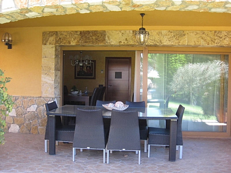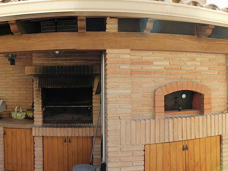 Сад, бассейн с летней столовой, барбекю и дровяная духовка.