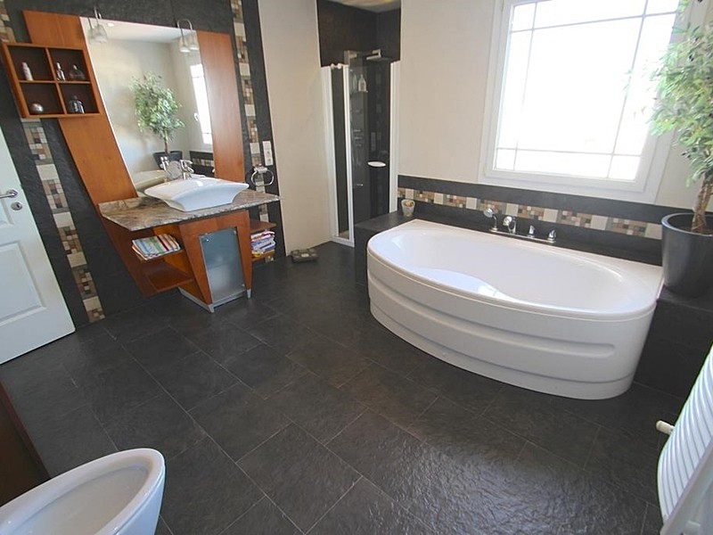 На втором этаже супружеская спальня с ванной комнатой и выходом на балкон, ещё две спальни (одна из них с выходом на балкон) и ванная комната.