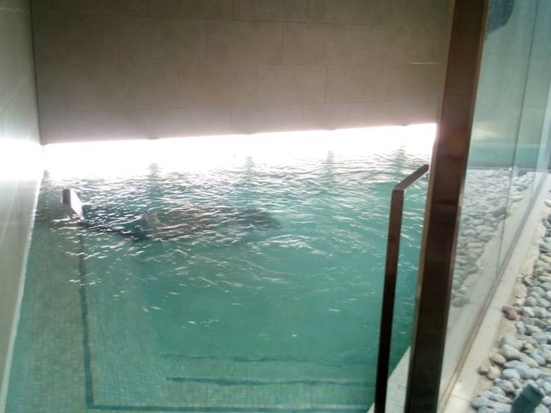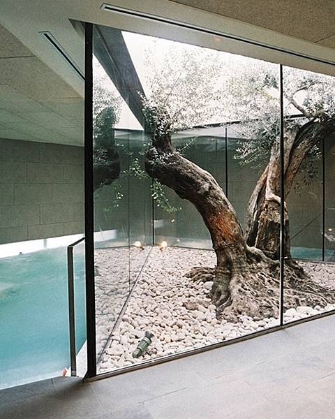 На первом этаже вестибюль с жерновами мельницы и камином, профессиональная кухня с кладовой, гостиная, СПА для водной терапии со столетним оливковым деревом, переодевалка и с/у.