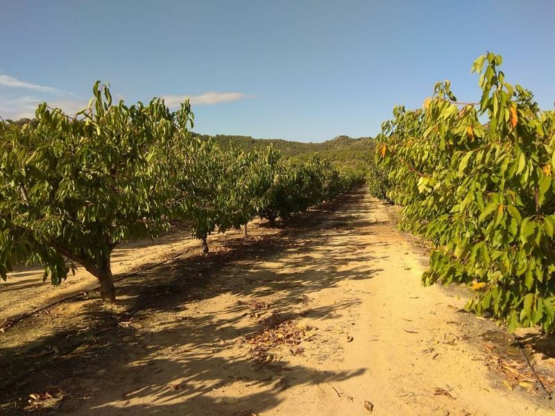 Плодоносящая плантация черешни 8 га. рядом с живописной рекой Альгáс в городке Батея провинции Таррагона.