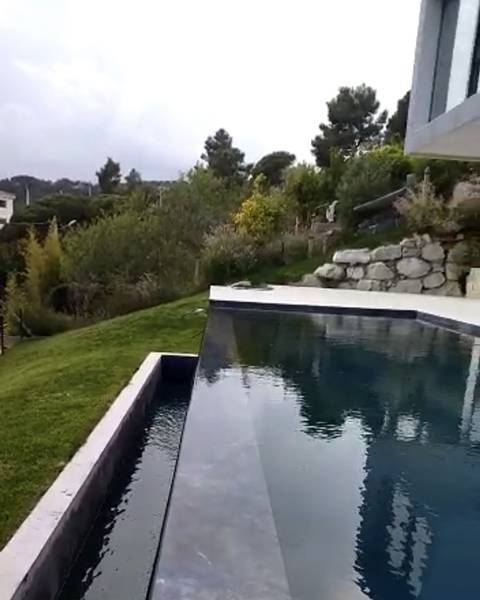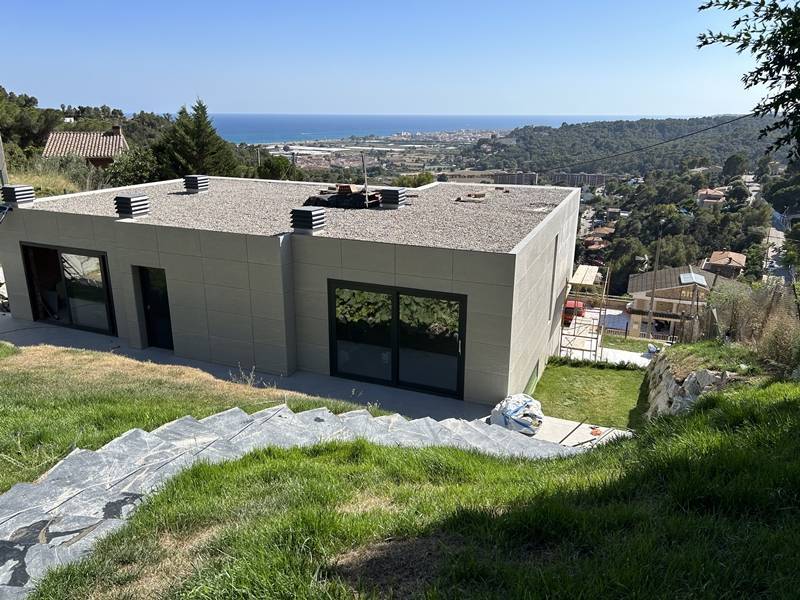 Вилла новой постройки с переливным бассейном и видом на море в приморском городке Санта Сусанна на побережье под Барселоной.
