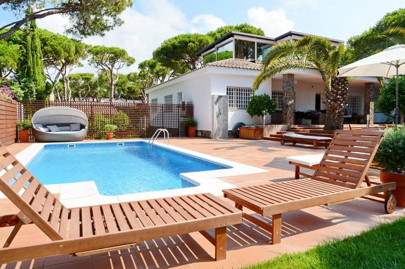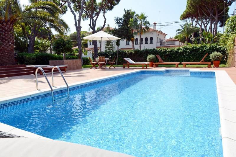 Двухэтажная вилла 360 кв.м. 1995 года постройки с бассейном на участке 16 соток, капитально отремонтированная в 2014 году рядом с пляжами престижного приморского городка Кастельдэфельс в 14-ти км. от Аэропорта Барселоны.