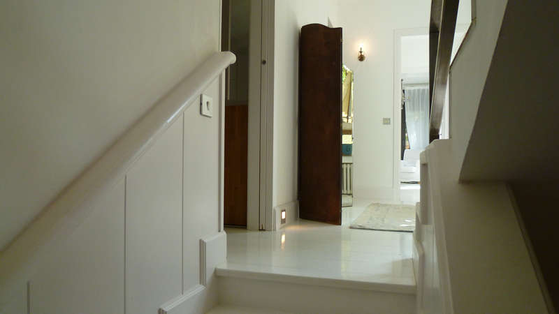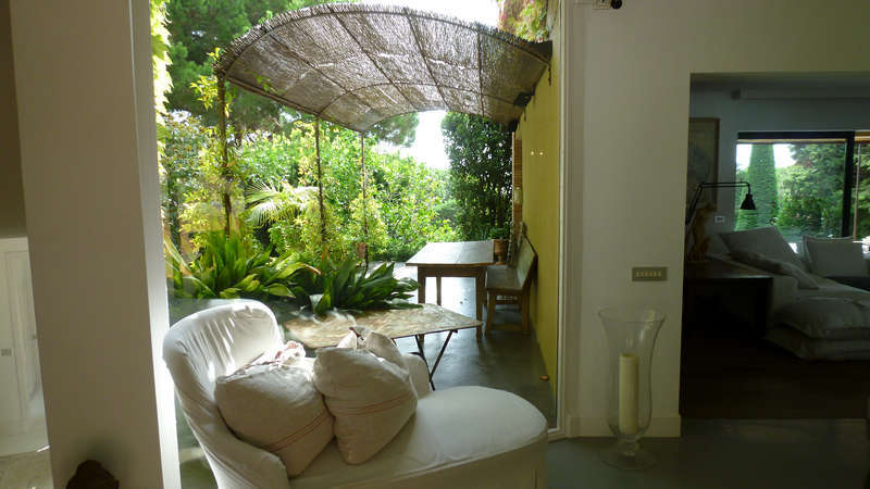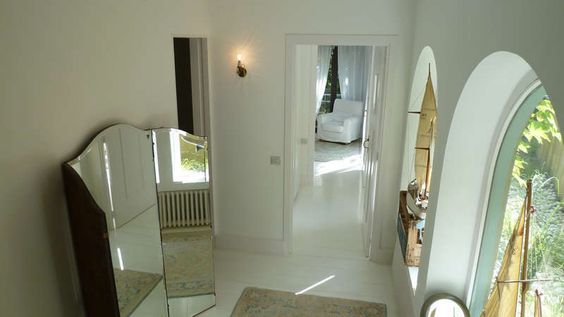 Многоуровневое строение в 370 кв.м. состоящее из трёх полуэтажей вмещает в себя просторную гостиную с экологическим камином и выходом в ухоженный средиземноморский сад с панорамным видом на море, столовую на 12 человек рядом с оборудованной и полностью экипированной кухней, супружескую спальню с гардеробом, выходом на террасу и ванной комнатой, две детские спальни с общей ванной комнатой, гостевую супружескую спальню с ванной комнатой и выходом в сад.