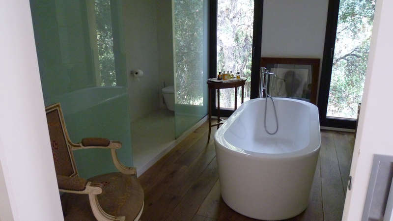 На нижнем уровне расположена спальня с ванной комнатой для обслуживающего персонала и кинозал с выходом в сад.