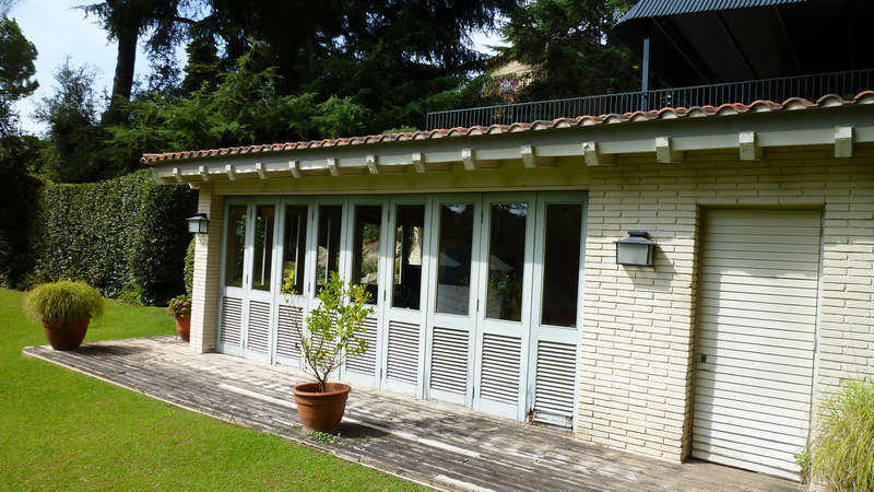 Ухоженный сад, большой бассейн с застеклённой летней верандой, теннисный корт.