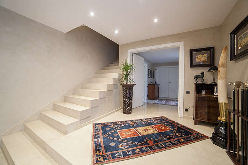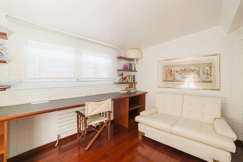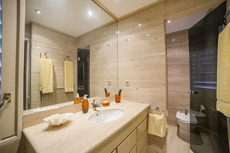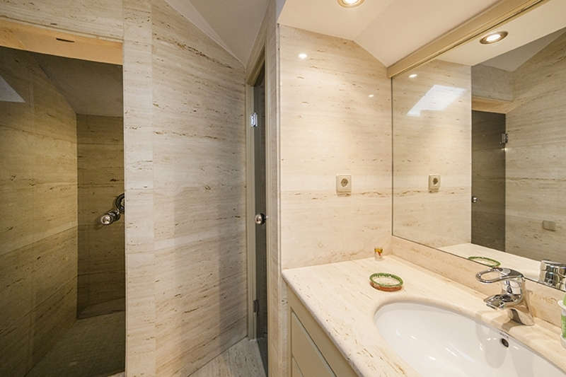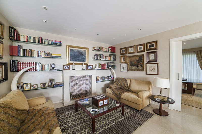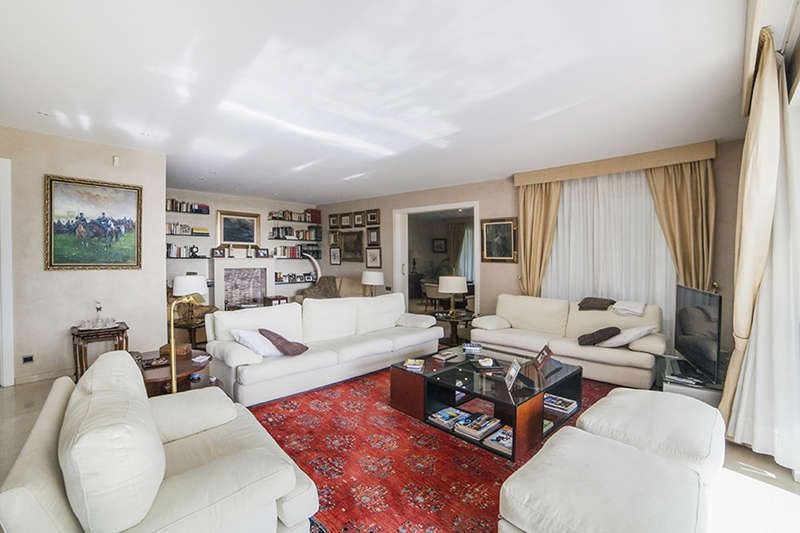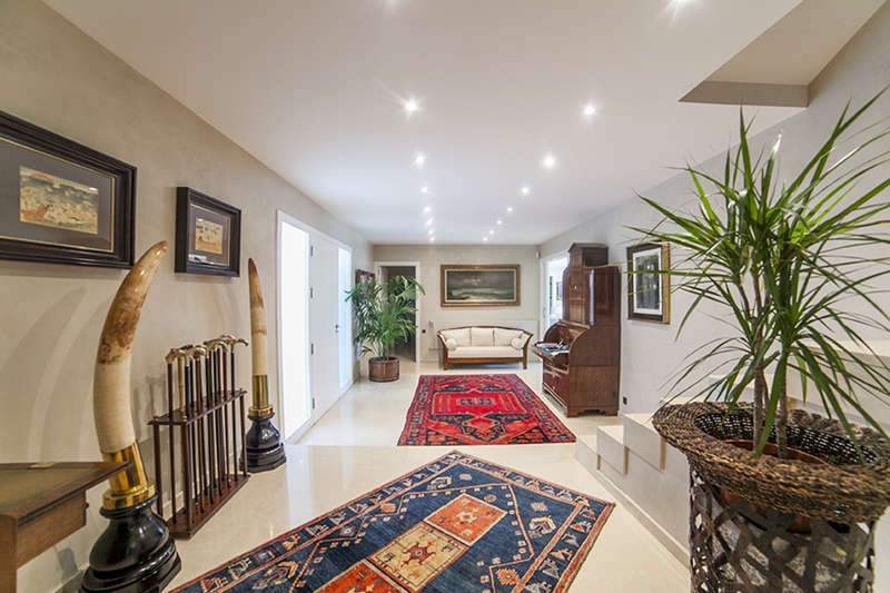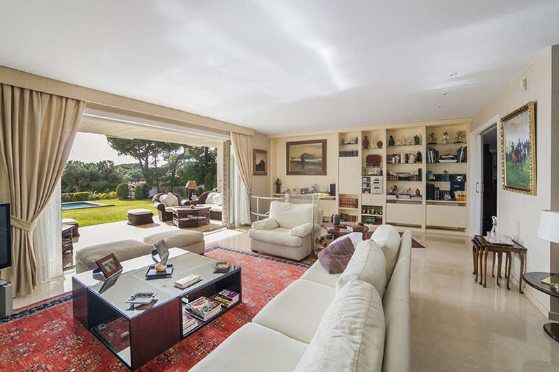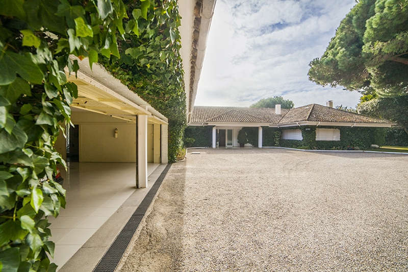 На первом этаже просторная гостиная со столовой 80 кв.м. с камином, выходом на веранду к бассейну и в ухоженный средиземноморский сад, основная супружеская спальня с гардеробом и ванной с гидромассажем, ещё пять супружеских спален с ванными комнатами, спальни для обсуживающего персонала, оборудованная и полностью экипированная кухня с прачечной.