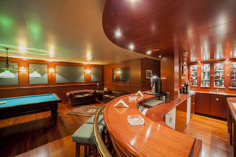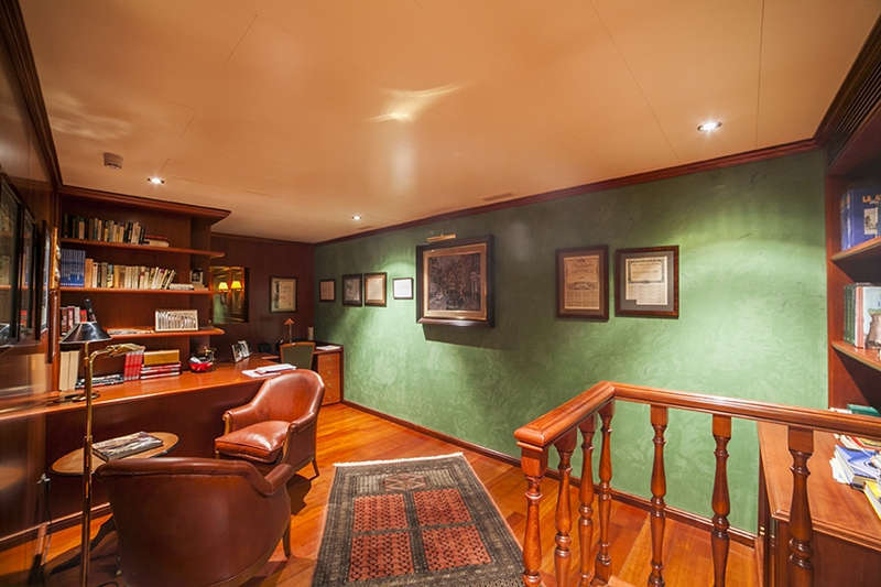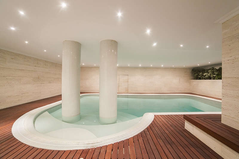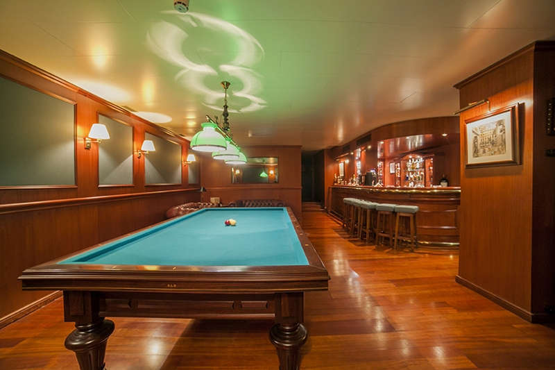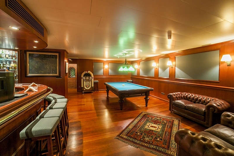 В цокольном этаже находится ещё один бассейн, спортзал, кабинет, биллиардная, бар, винотека.