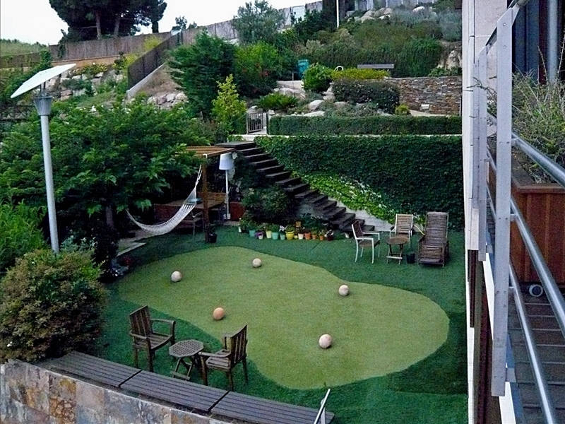 Средиземноморский сад с бассейном 10х5 и две площадки мини гольфа.