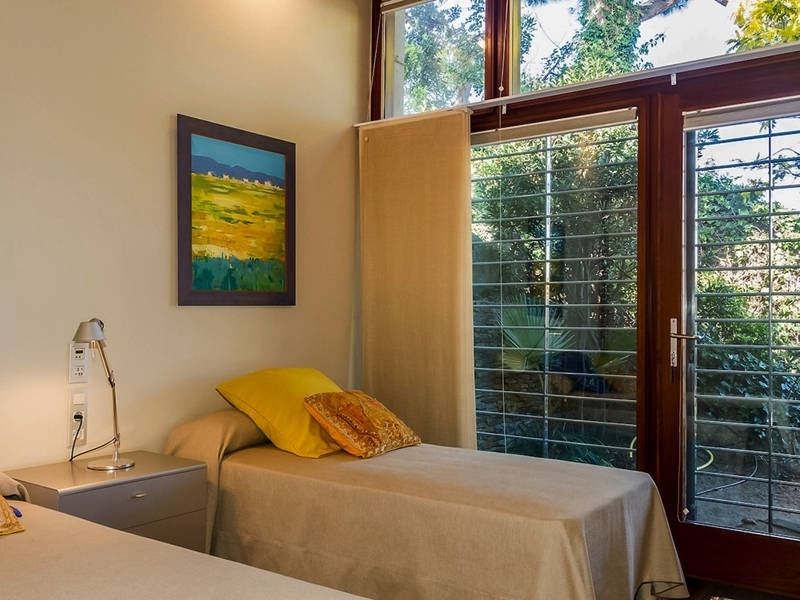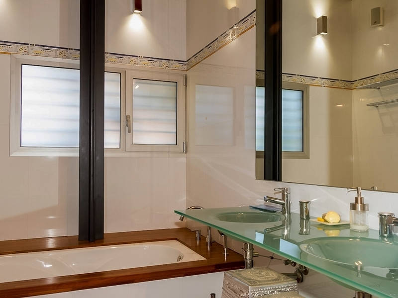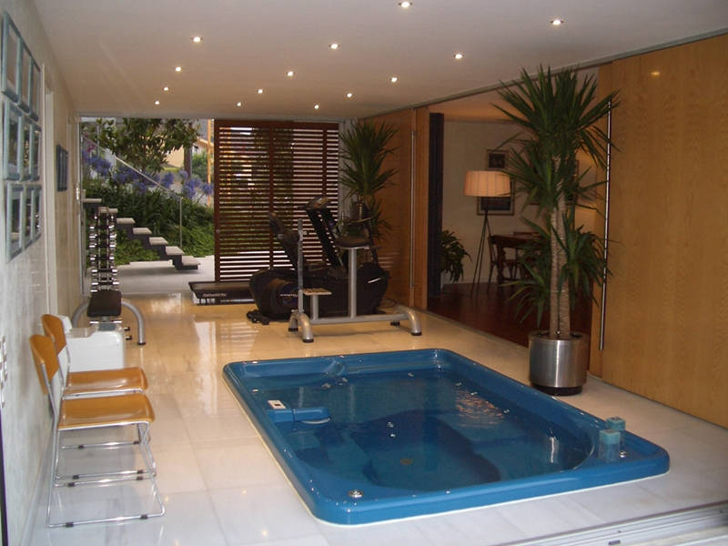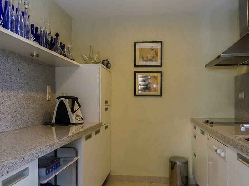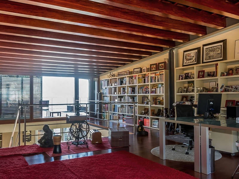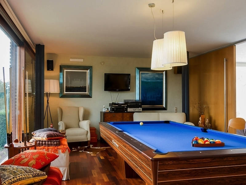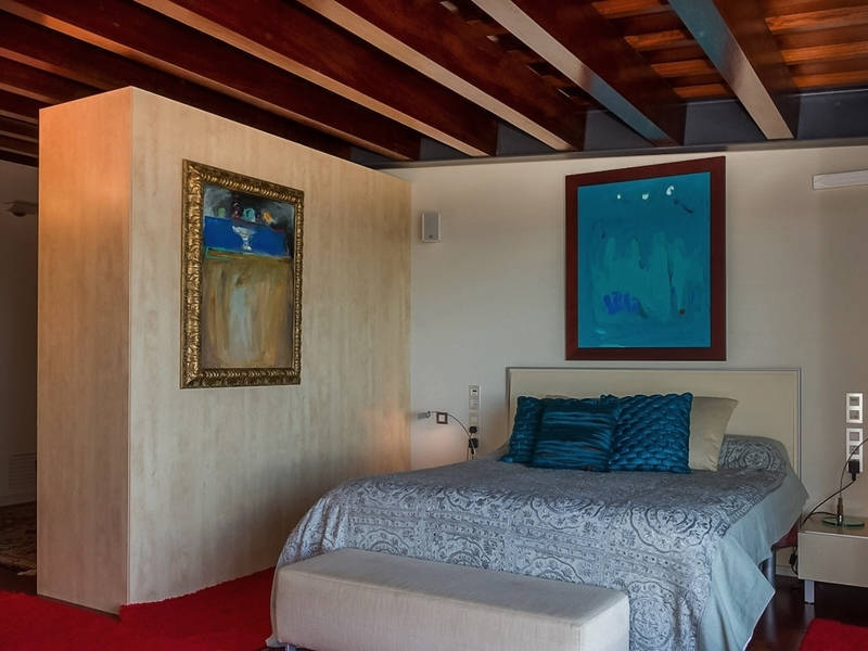 Просторная гостиная со столовой и камином, основная супружеская спальня с гардеробом, ванной комнатой и выходом на террасу, ещё три супружеские спальни со своими ванными комнатами, оборудованная и полностью экипированная кухня-офис с островом, кабинет с библиотекой, тренажёрный зал со СПА, джакузи, сауной, мини бассейном и вспомогательной кухней, бильярдная, винный погреб, кладовка, гладильная.