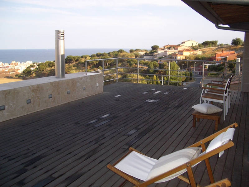 Современная элитная трёхэтажная вилла 508 кв.м. с бассейном и панорамным видом на море на участке 15 с. в приморском городке Калейя на побережье под Барселоной.
