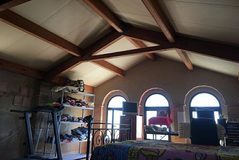В Основном четырёхэтажном здании расположены гостиная 60 кв.м., столовая 60 кв.м., оборудованная и экипированная кухня-офис 50 кв.м., винотека, супружеская спальня с ванной комнатой и ещё пять просторных спален и две ванные комнаты.