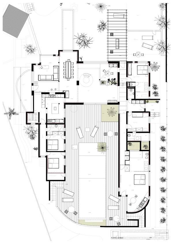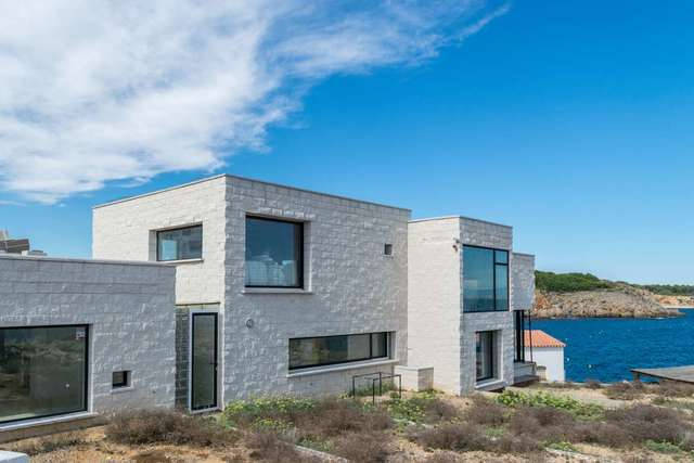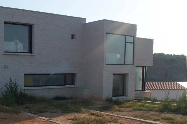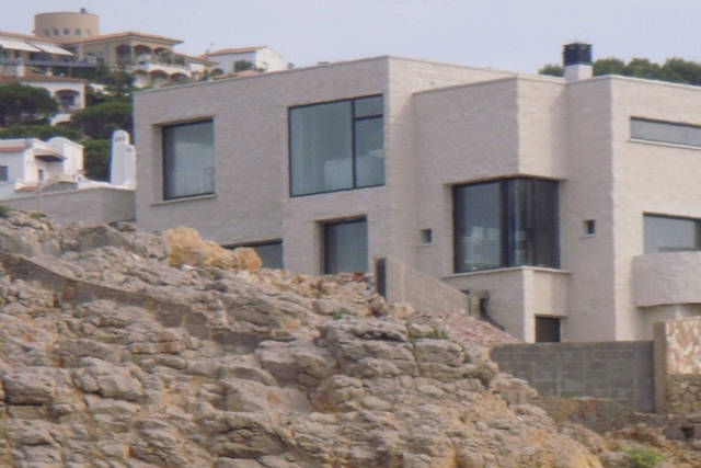 При строительстве виллы использованы биоклиматические материалы, общие пространства располагают двойной высотой, окна спроектированы, как панорамные картины на залив Росас.