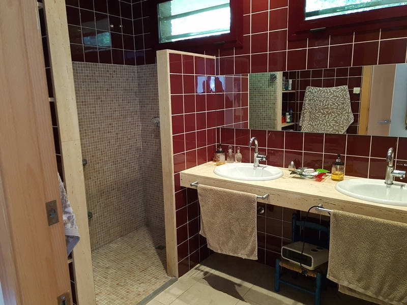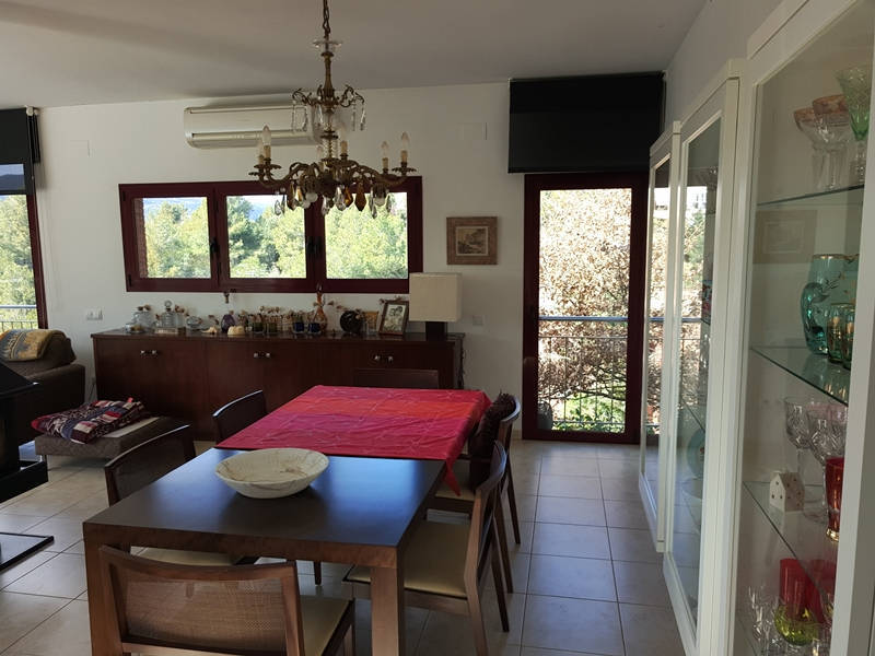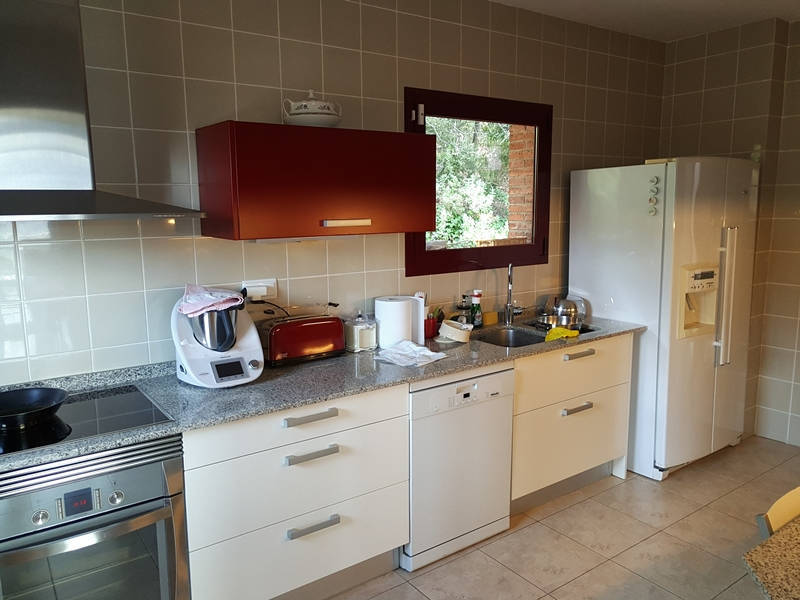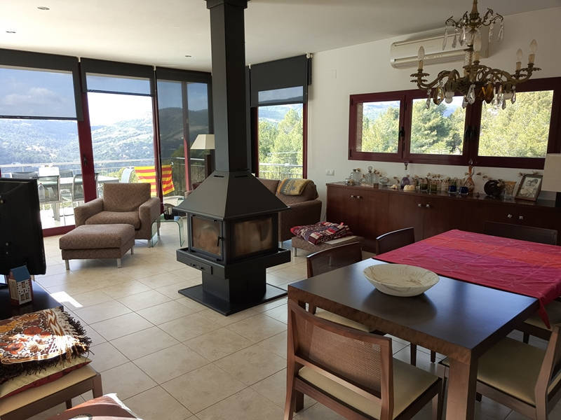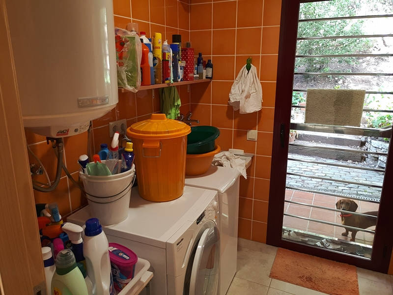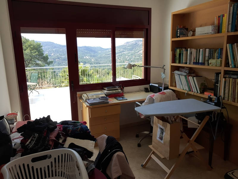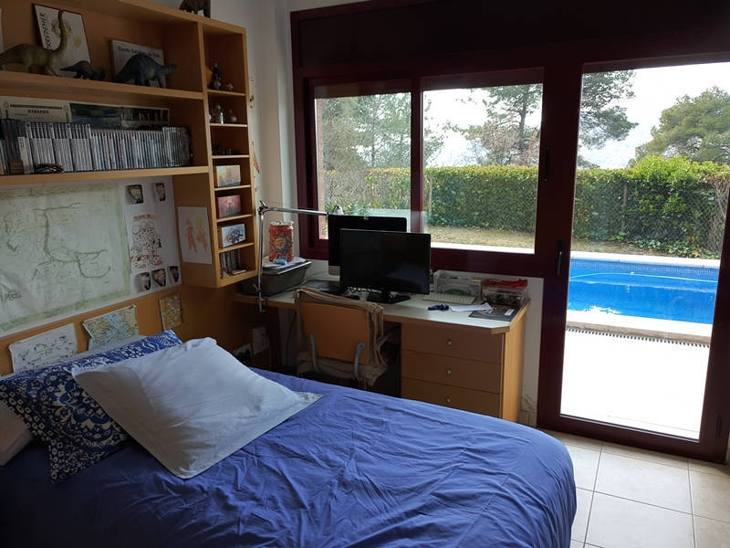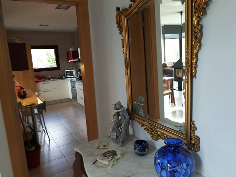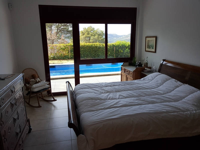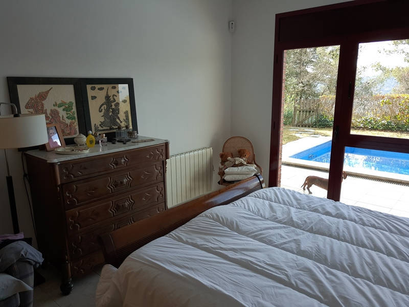 Просторная гостиная-столовая с камином и выходом на террасу к бассейну, оборудованная кухня-офис, прачечная, супружеская спальня с гардеробом, ванной комнатой и выходом на террасу к бассейну, ещё три спальни с выходом на террасу к бассейну и ванная комната.