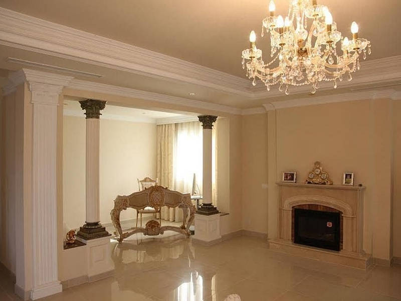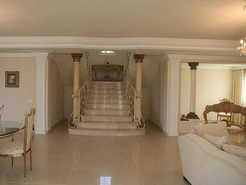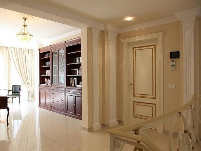 Балюстрады, полы из травертинского мрамора, встроенные шкафы.