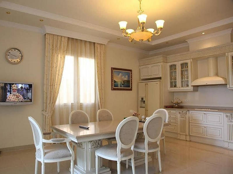 Просторная гостиная-столовая с камином и видом в сад к бассейну, оборудованная и оснащённая кухня-офис, четыре просторные спальни с гардеообной, кабинет, три ванные комнаты и два с/у.