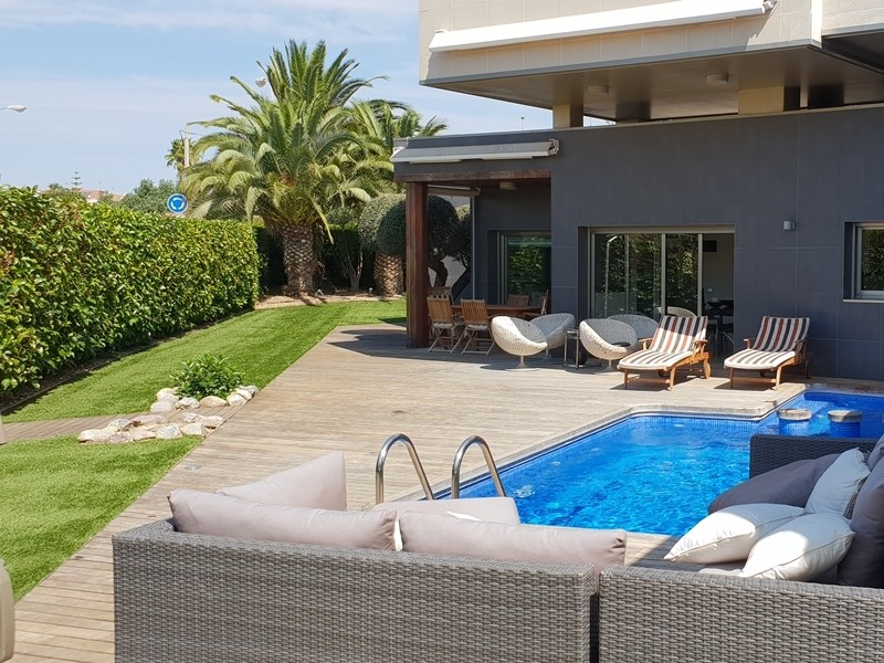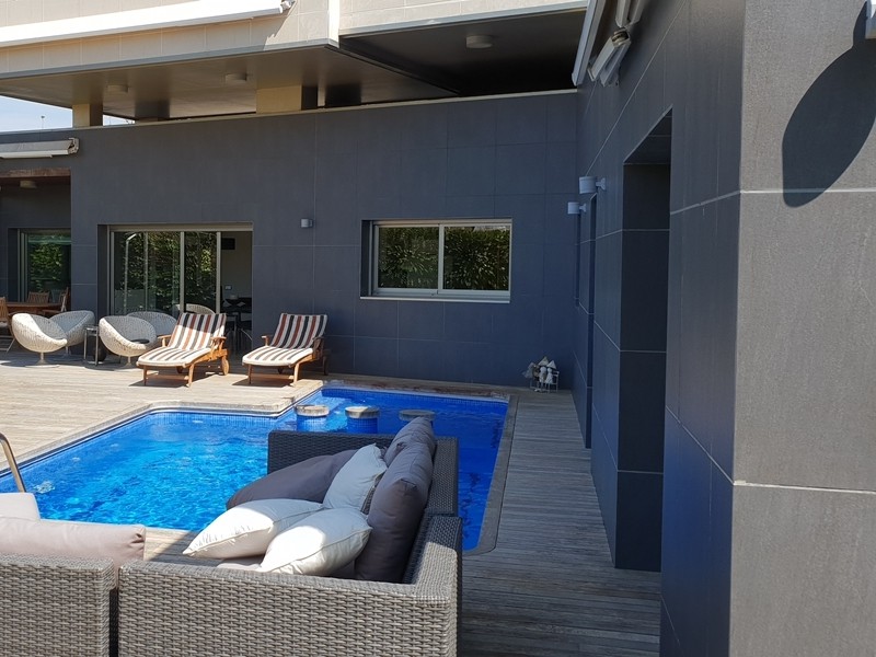 Элитная дизайнерская вилла 311 кв.м. с бассейном на участке 8 с. в престижном посёлке Вилафортунь между популярным туристическим городом Салоу и курортным городком Камбрильс на побережье Коста Дорада в 18 км. от Таррагоны.