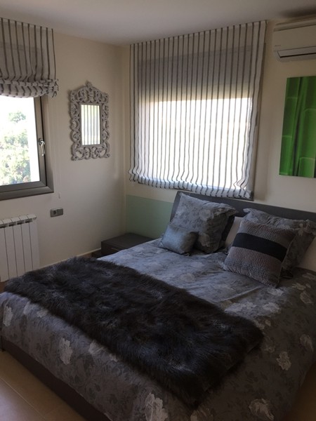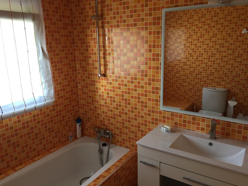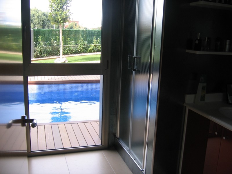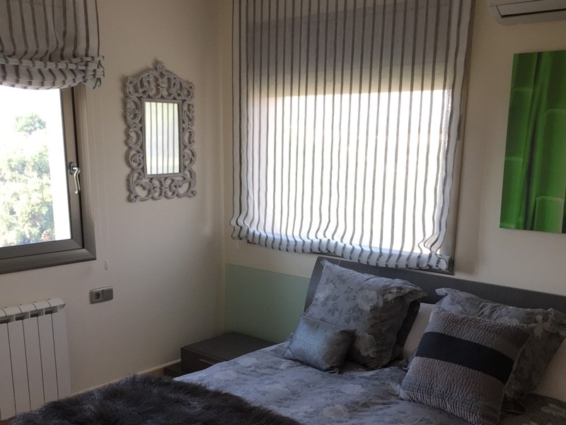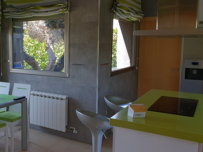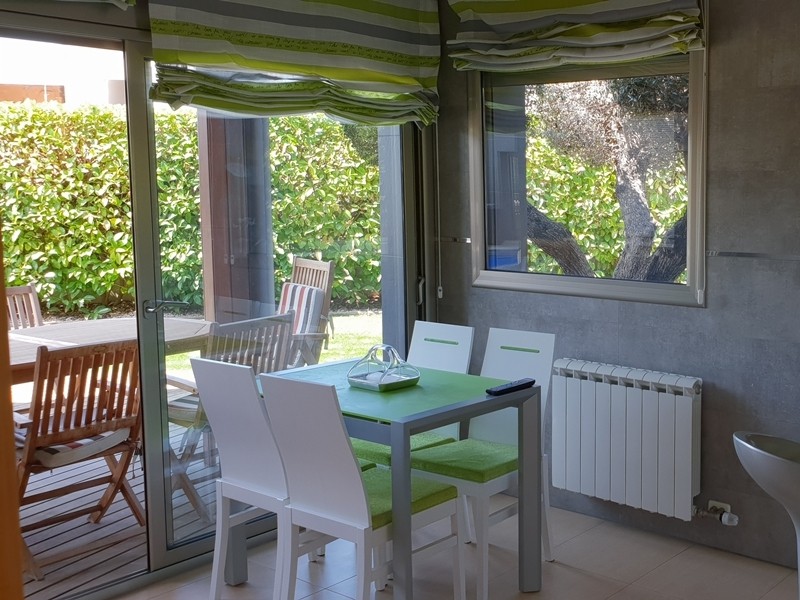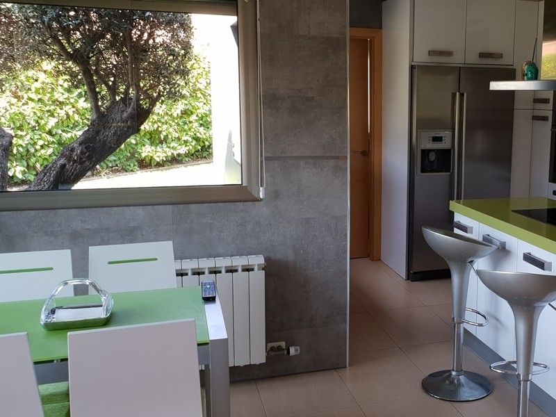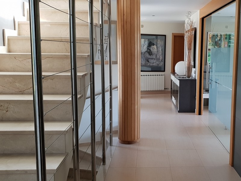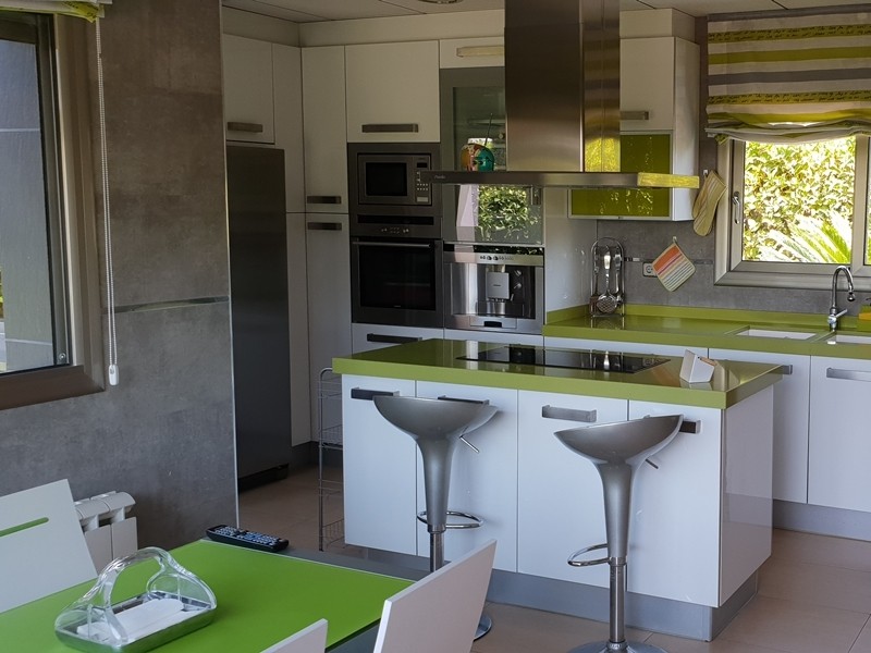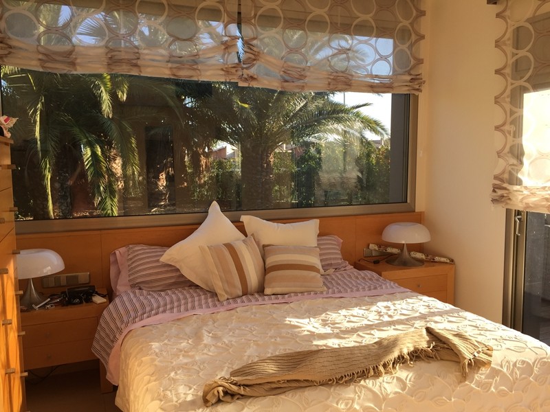 На первом этаже просторная гостиная с выходом в сад к бассейну, оборудованная и полностью экипированная кухня-офис с островом и выходом в сад, супружеская спальня с ванной комнатой, ещё одна спальня и ванная комната. Гараж.