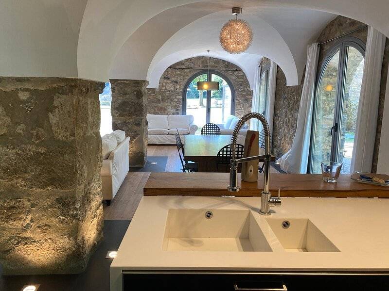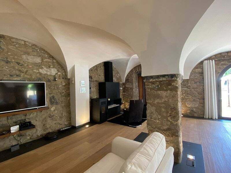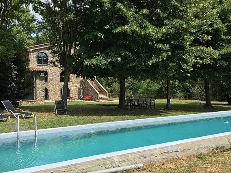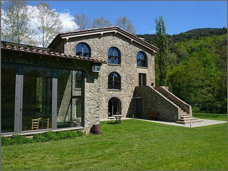 Со вкусом отреставрированная старинная каменная усадьба с участком 3 г. на стыке двух живописных речек Бианья и Риудаура рядом с городком Олот в Национальном Парке Вулканов Гарроча в 62 км. от Жироны.