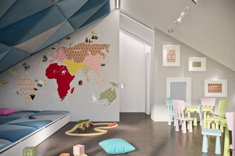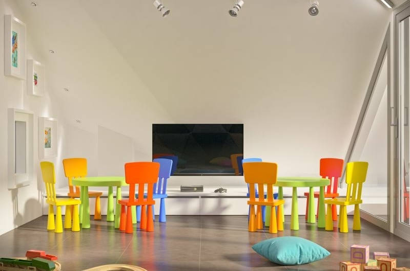 В мансарде поливалентный зал с ванной комнатой и выходом на террасу.