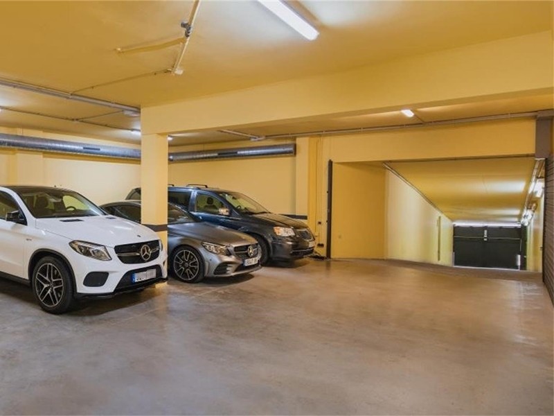 В цокольном этаже 250 кв.м. гараж на 45 машин, кладовки и бойлерная.