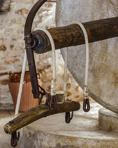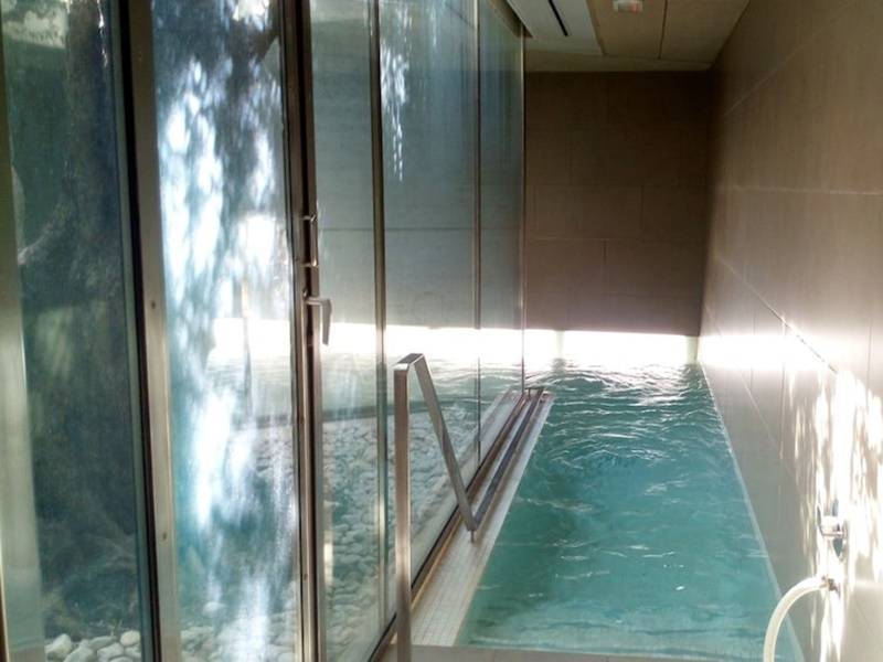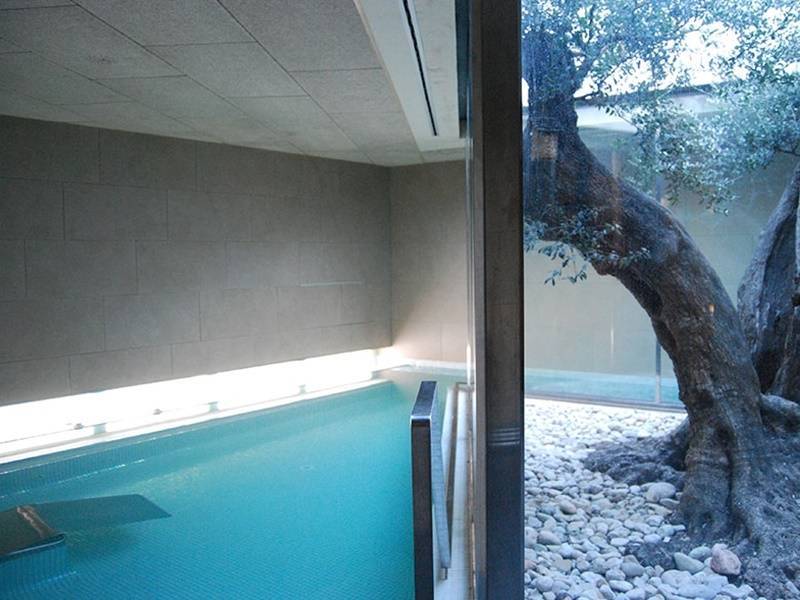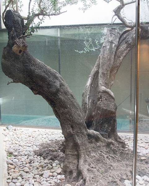 На первом этаже вестибюль с жерновами мельницы и камином, профессиональная кухня с кладовой, гостиная, СПА для водной терапии со столетним оливковым деревом, переодевалка и с/у.