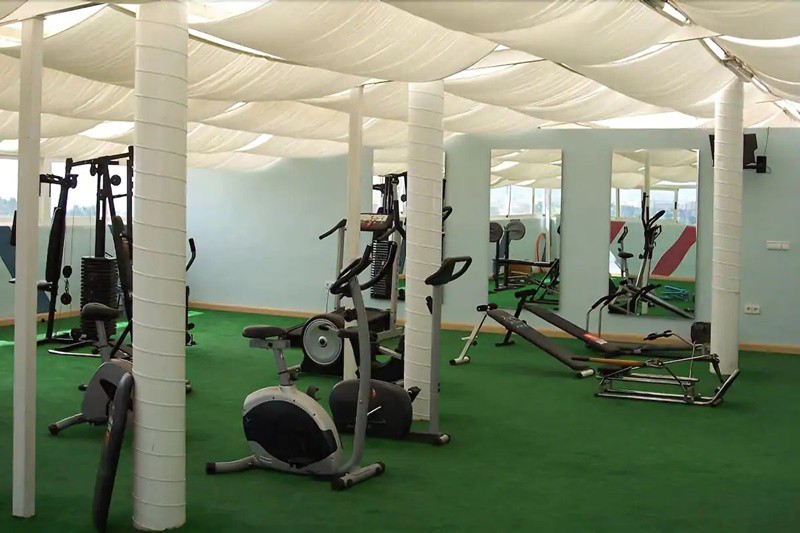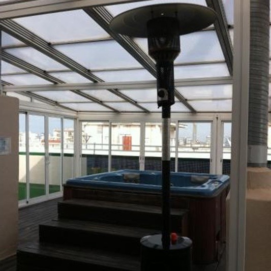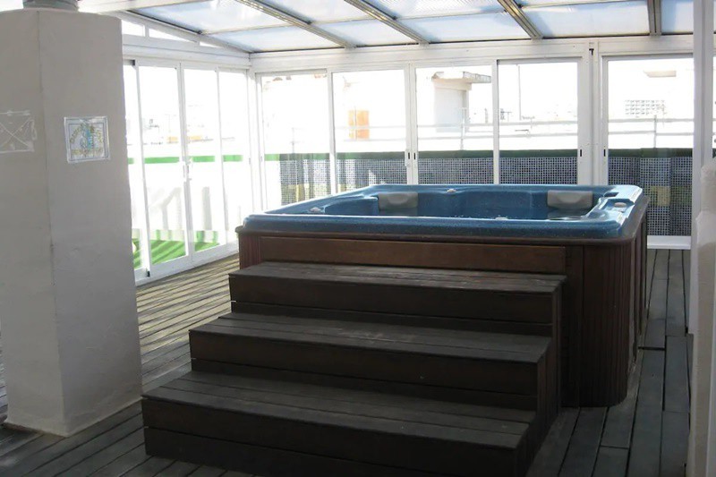 На крыше здания находятся открытый бассейн, солярий, джакузи с сауной и фитнесс зал.