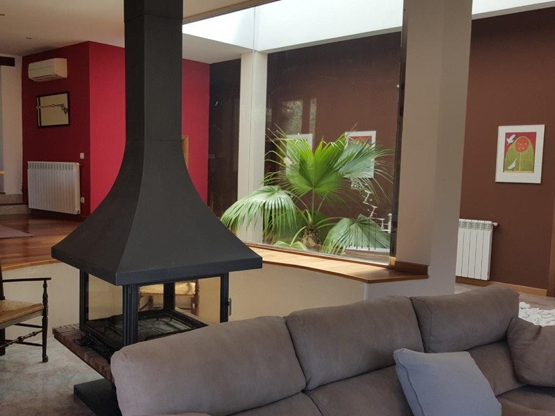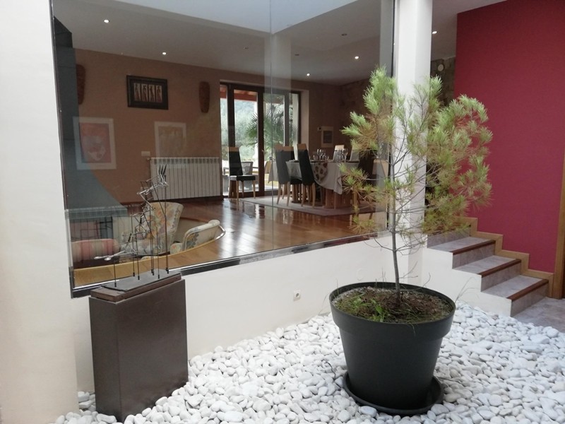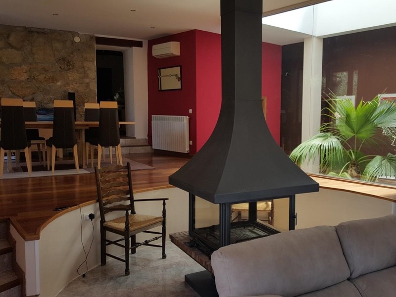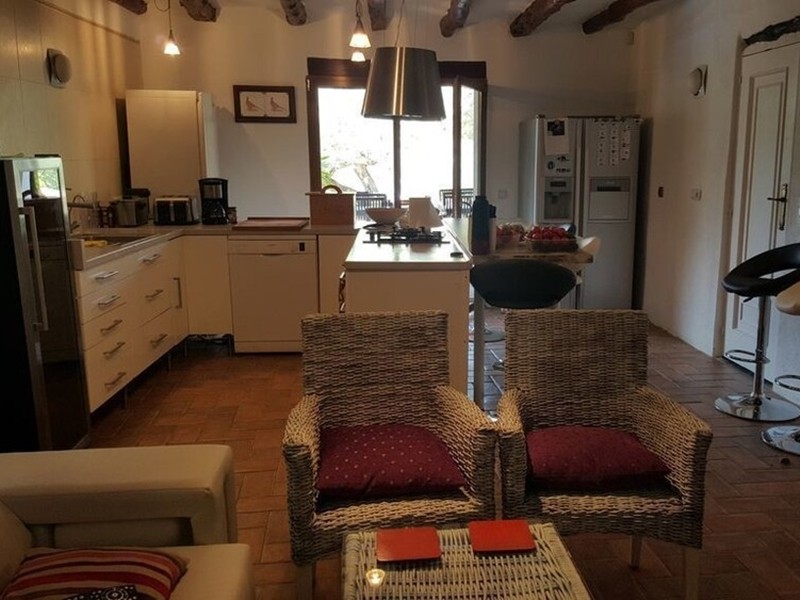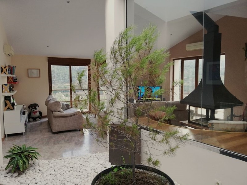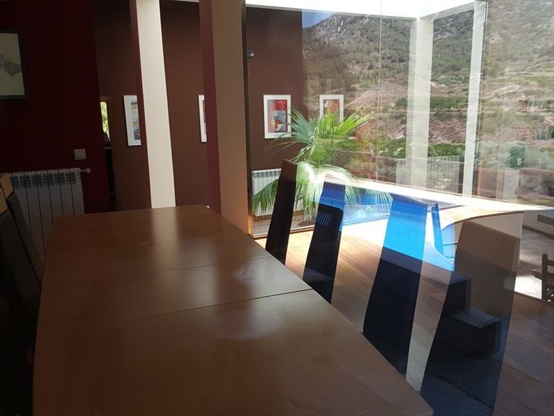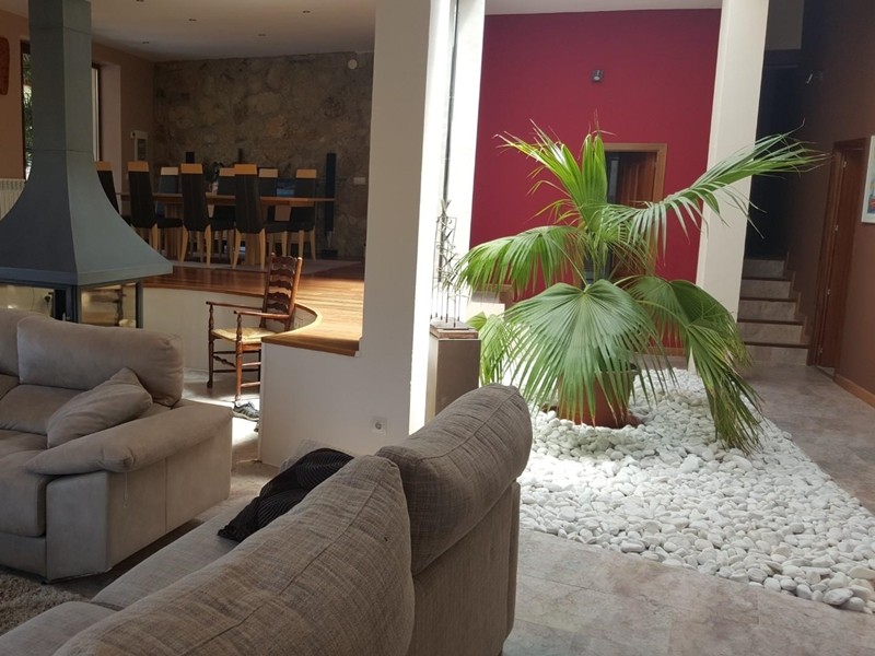 На первом этаже двухуровневая гостиная со столовой, камином и выходом к летней столовой с ББК и бассейну, две супружеские спальни с ванной комнатой каждая, ещё одна спальня и ванная комната, оборудованная кухня-офис с островом.