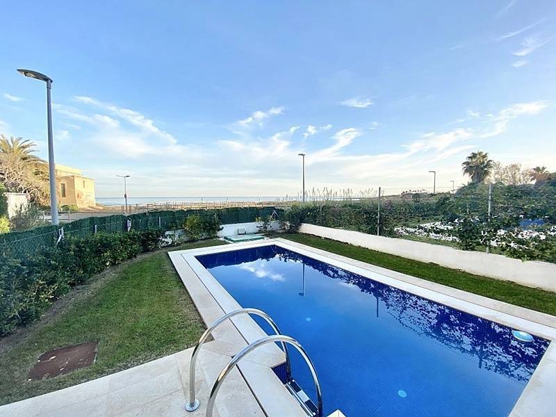 Новый двухэтажный дуплекс с мансардой и бассейном у самого моря в приморском городке на побережье Асаар.