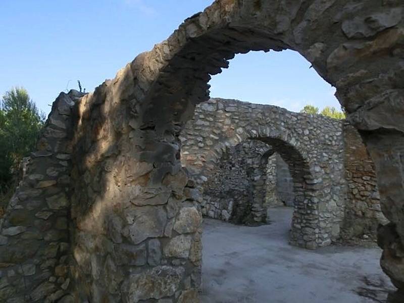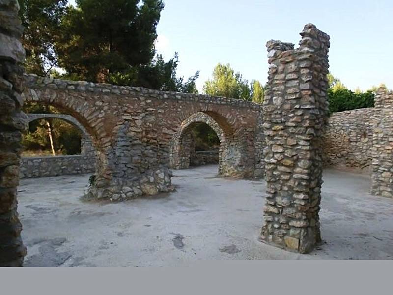 На территории разбросаны руины небольших каменных построек...