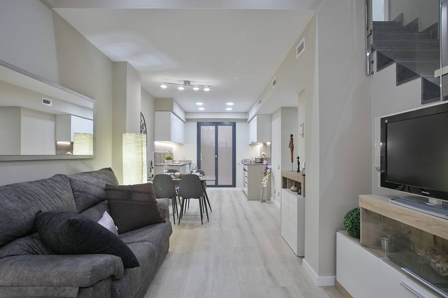 Четырёхкомнатная двухэтажная квартира нового здания в районе Гинардо Барселоны рядом с площадью Марагаля.