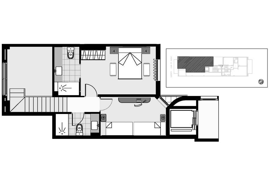 На втором этаже супружеская спальня с ванной комнатой, ещё одна спальня и ванная комната.