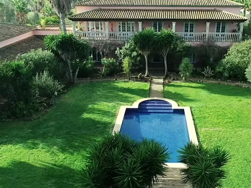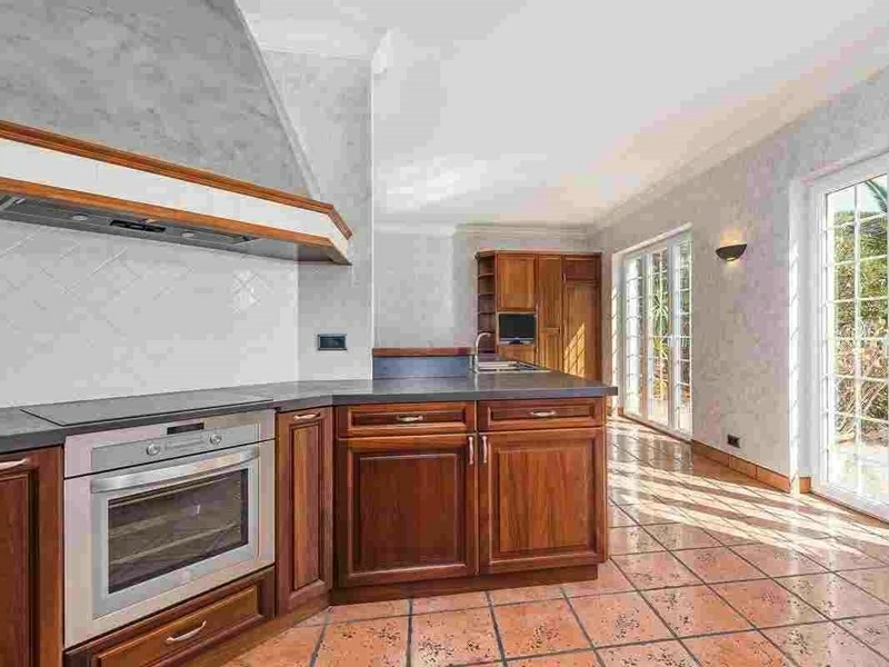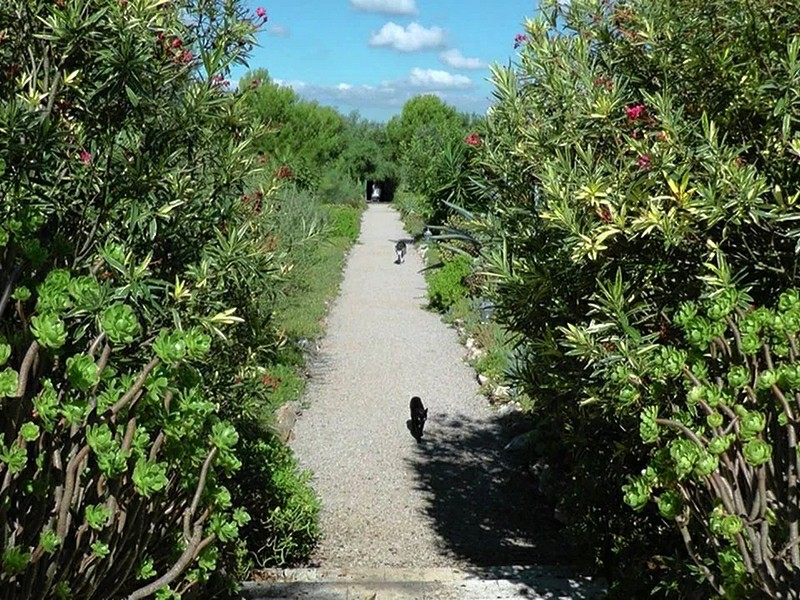 В ухоженном средиземноморском саду с разнообразными видами растений и кактусов - бассейн 43 кв.м. с подогревом из солёной воды и зона барбекю.