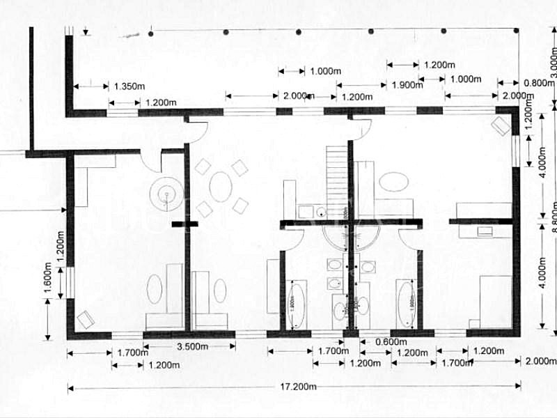 В ста метрах находится домик 90 кв. для обслуживающего персонала с гостиной, спальней, кухней-американкой и ванной комнатой.