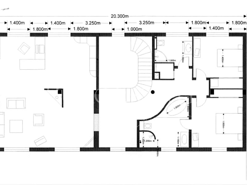 В одноэтажном крыле, прилегающим к основному зданию расположены два гостевых апартамента (каждый с отдельным входом), состоящие из гостиной, супружеской спальни с ванной комнатой и кабинета/спальни.