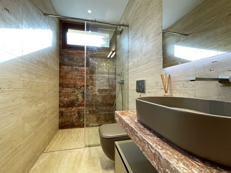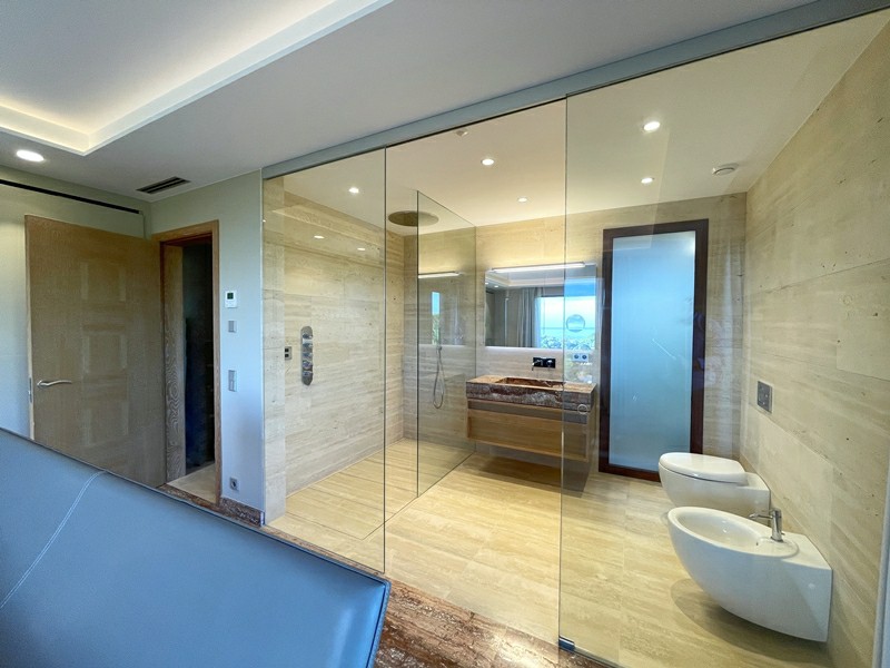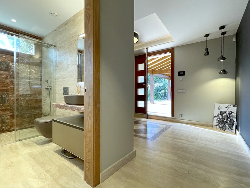 В мансардном этаже с выходом в сад ещё две супружеские спальни, поливалентный зал, хамам и ванная комната.