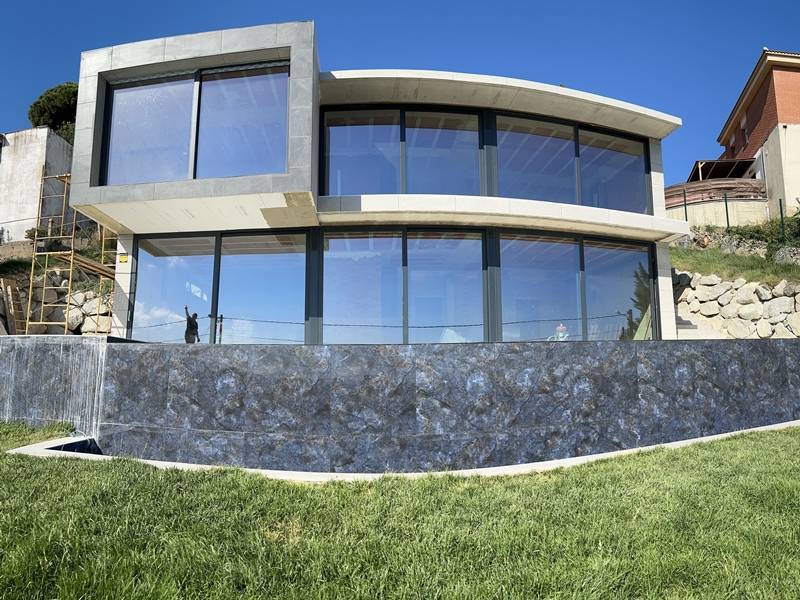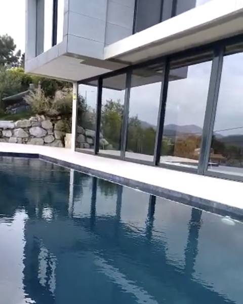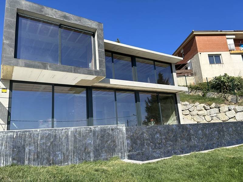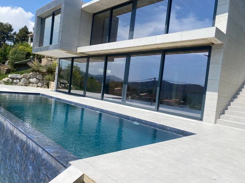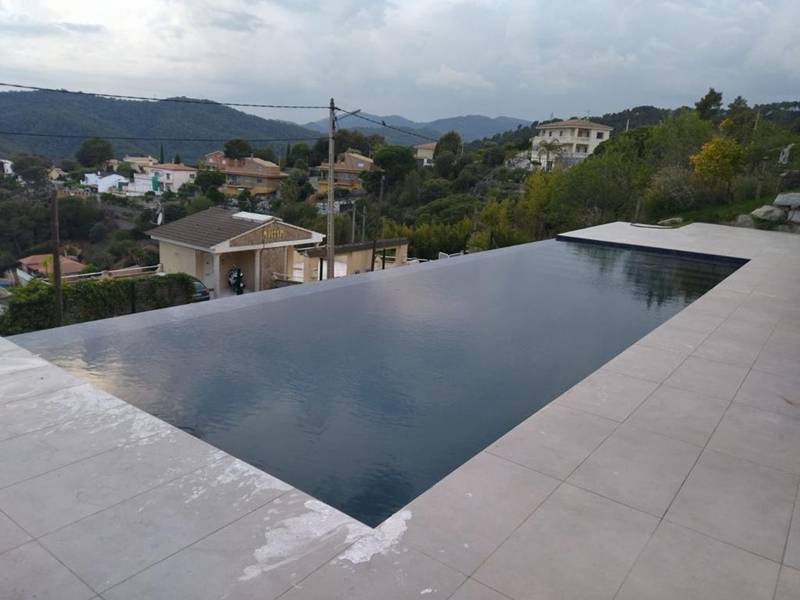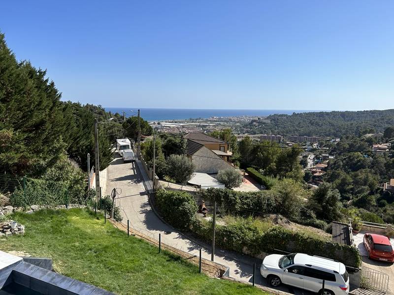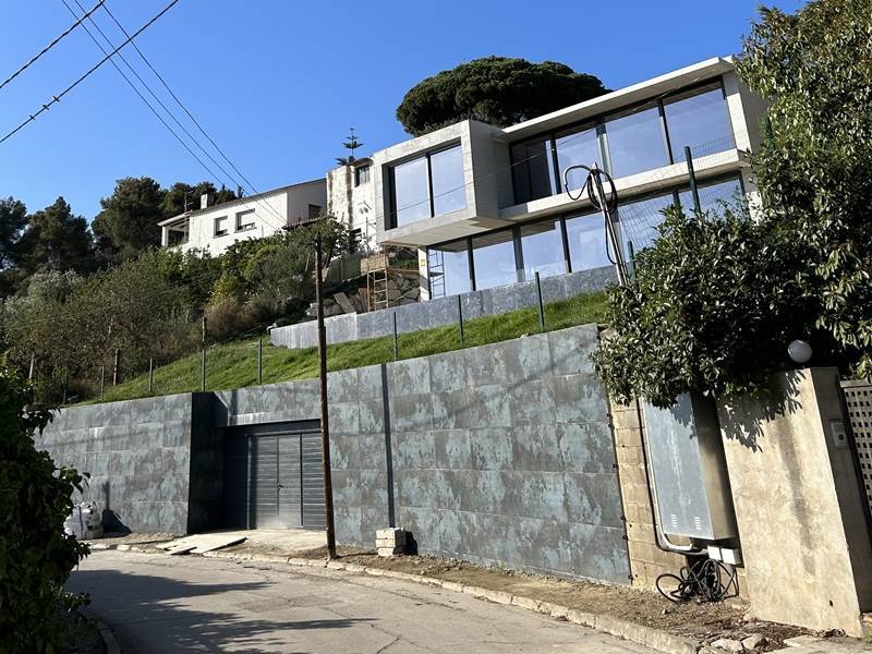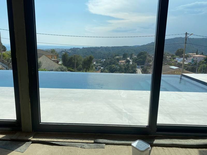 Вилла новой постройки с переливным бассейном и видом на море в приморском городке Санта Сусанна на побережье под Барселоной.